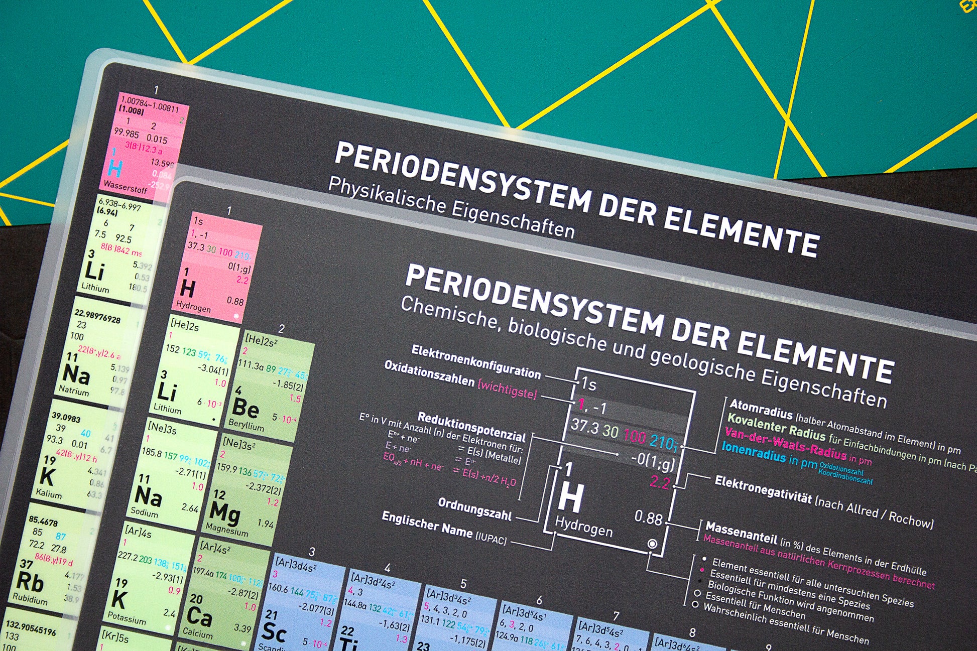 Speziell konzipiert für die anspruchsvollste Zielgruppe aus Studenten der Naturwissenschaften und Profis in den Bereichen Chemie, Biologie und Physik ist diese DIN A4 Version unseres tausendfach verkauften Periodensystems die umfangreichste Ausgabe, die wir je herausgebracht haben. Sie enthält alle wichtigen Informationen auf dem aktuellen Stand der Wissenschaft, logisch sortiert auf Vorder- und Rückseite: